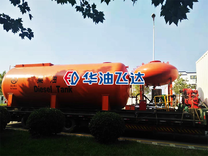高架柴油罐和小型集装箱房装车准备发货