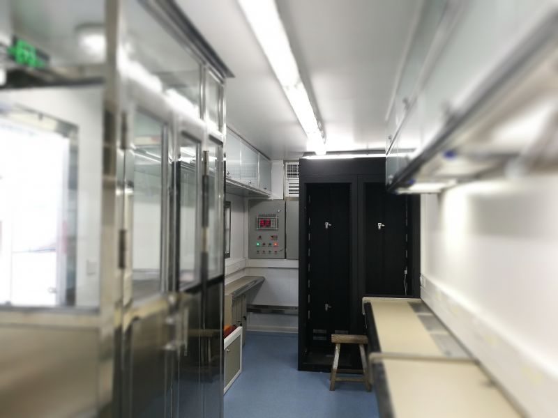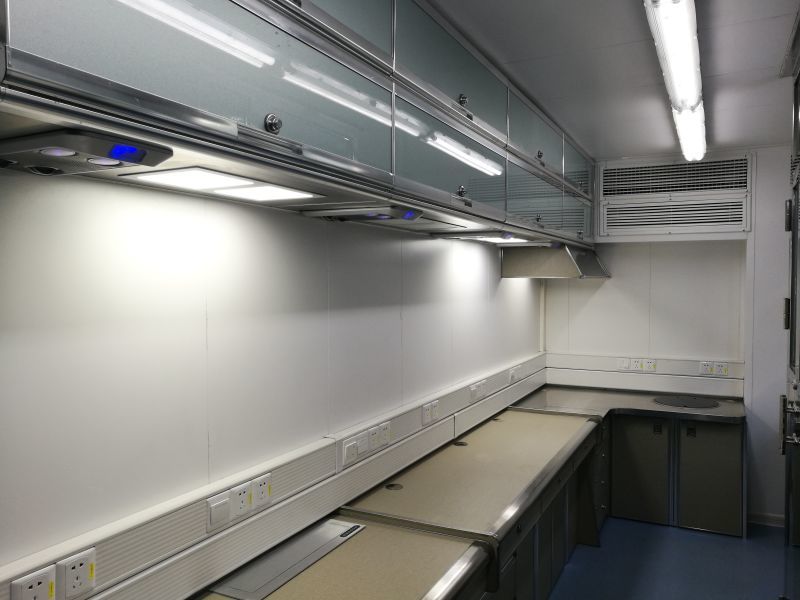 :钢结构焊制的集装箱式营房,房体承重能力强,吊装运输不变形。与普通野营房相比,该营房防火级别要求高,室内装修选用档次